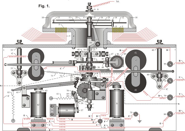 Fernschreiber, oder anderer elektrischer Geräte durch elektrische Verbindungen
